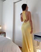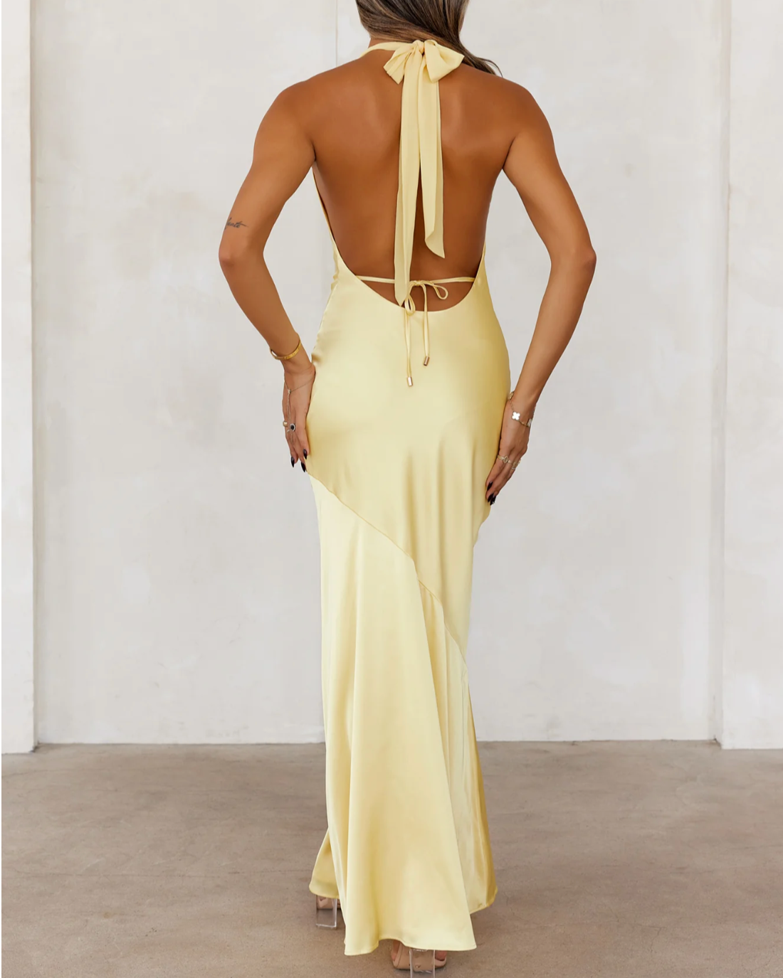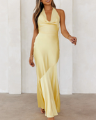 Lavish Lifestyle Satin Halter Maxi Dress | Yellow
