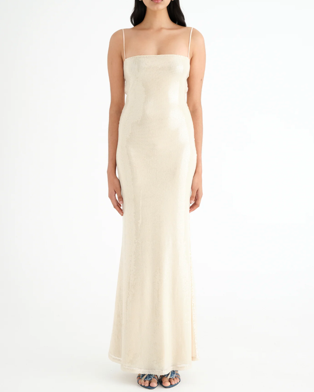 Juliano Sequin Slip Maxi Dress | Light Toffee