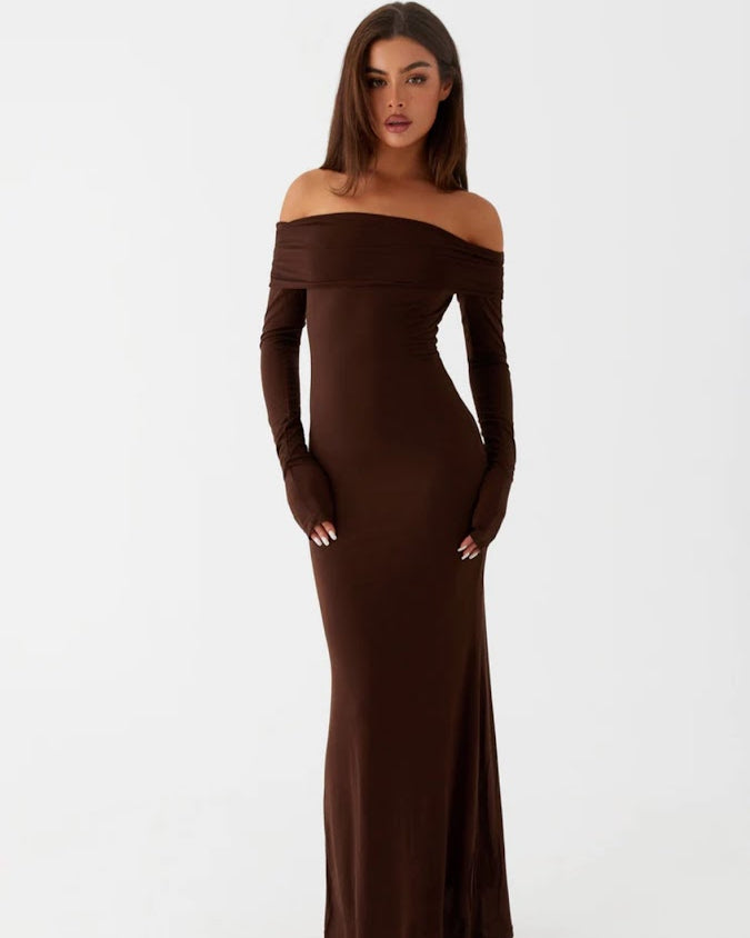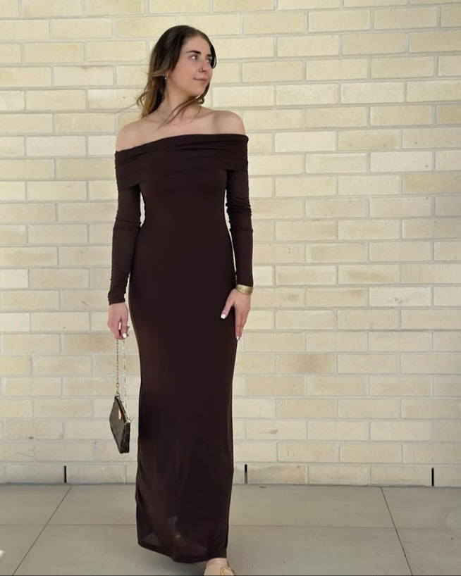 Cocoa Long Sleeve Maxi Dress | Chocolate