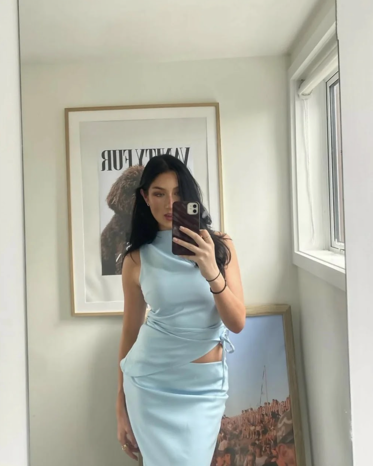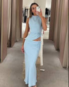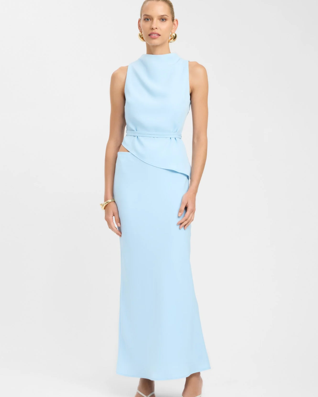Maria High Cowl Neck + Maria Slip Skirt Maxi Set | Light Blue