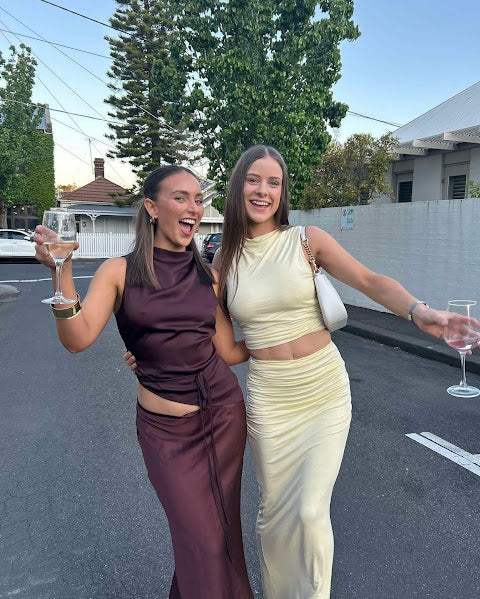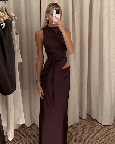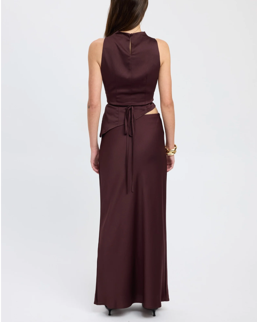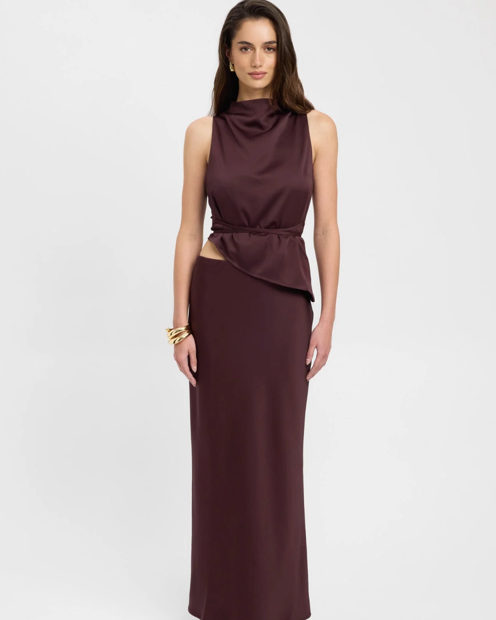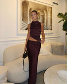 Prato High Cowl Neck + Prato Slip Skirt Maxi Set | Brown