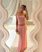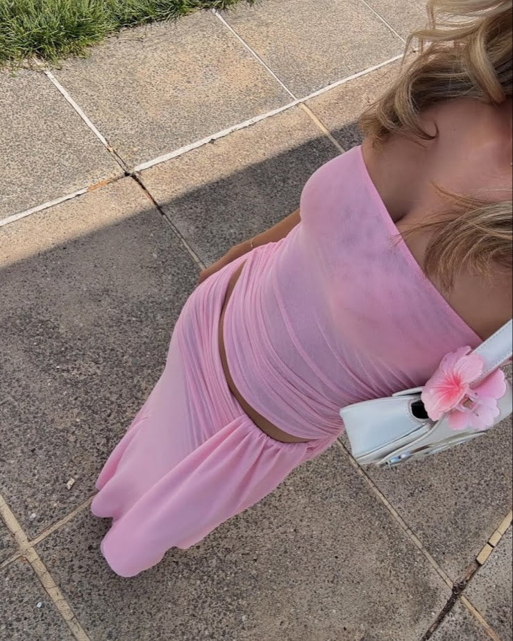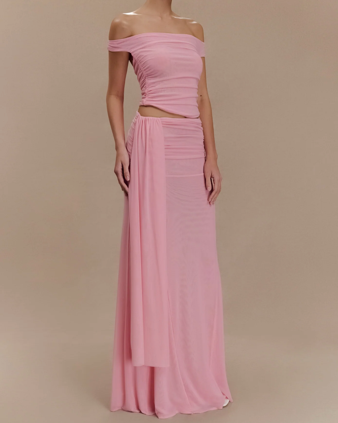 Brooklyn Mesh Crop Top + Arna Mesh Maxi Skirt Maxi Set | Candy Pink
