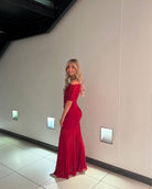 Caspian Slinky And Mesh Off Shoulder Maxi Dress | Ruby