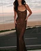 Jasmyn Hot Fix Maxi Dress With Mesh Back | Chocolate