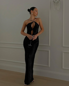 Lucia Satin Cut Out Maxi Dress | Black