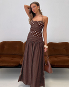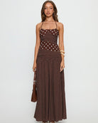 Marguerite Halter Maxi Dress | Brown Polka Dot