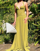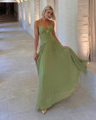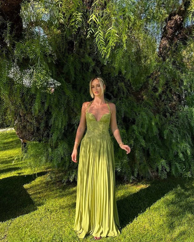 The Gaia Dress comes in a rich green tone, featuring our signature floral lace on the top part with boning and a snatching corset. The pleated skirt drapes effortlessly, moving with a soft, graceful flow. Guaranteed to be the most unique dress in the room, made to steal the spotlight.
